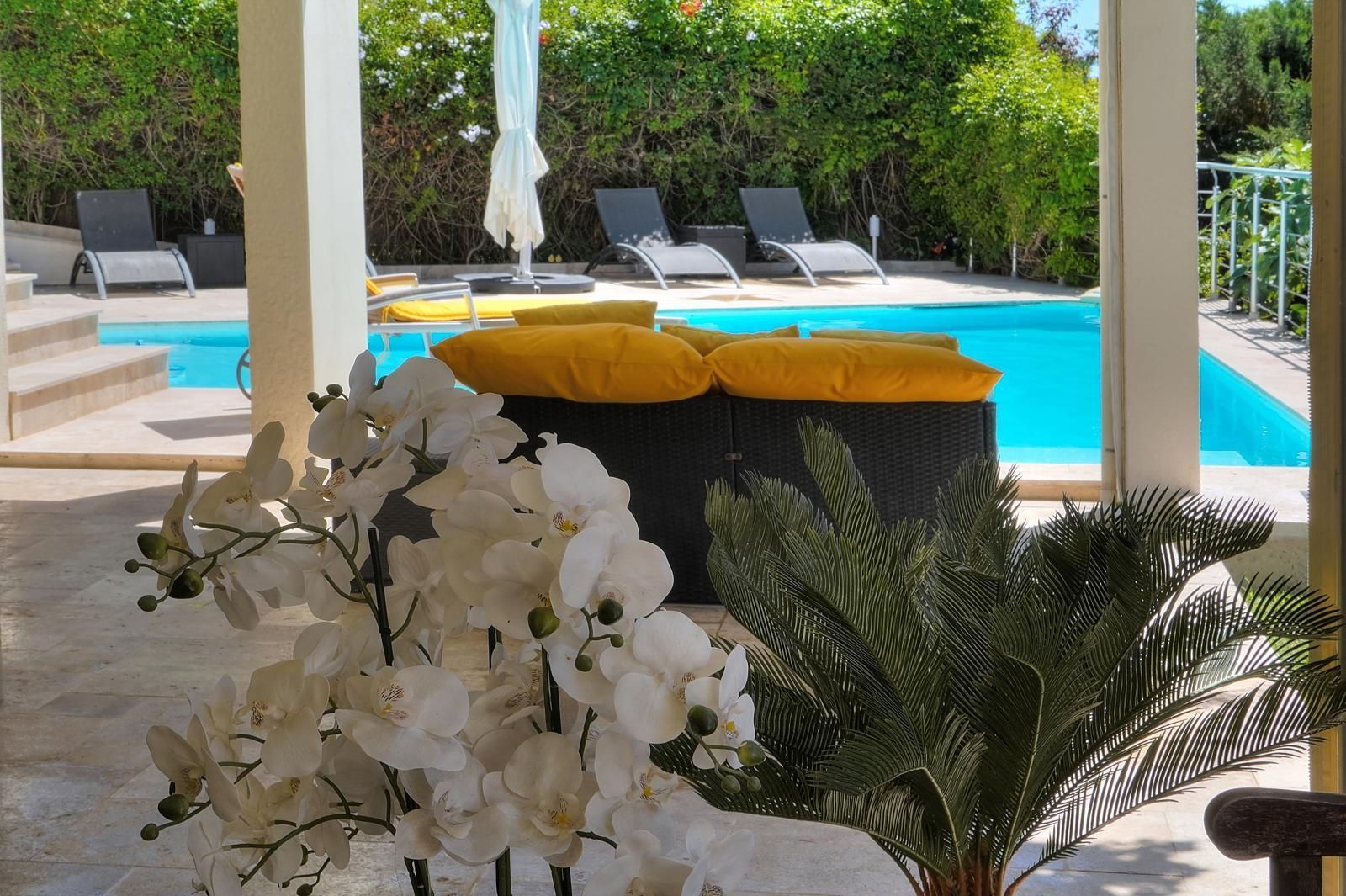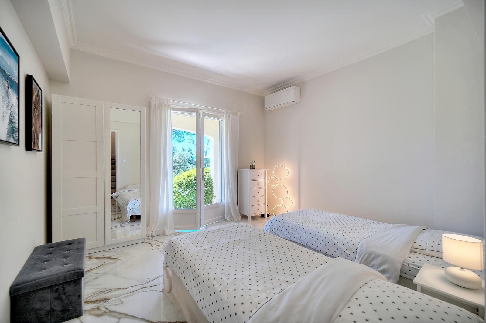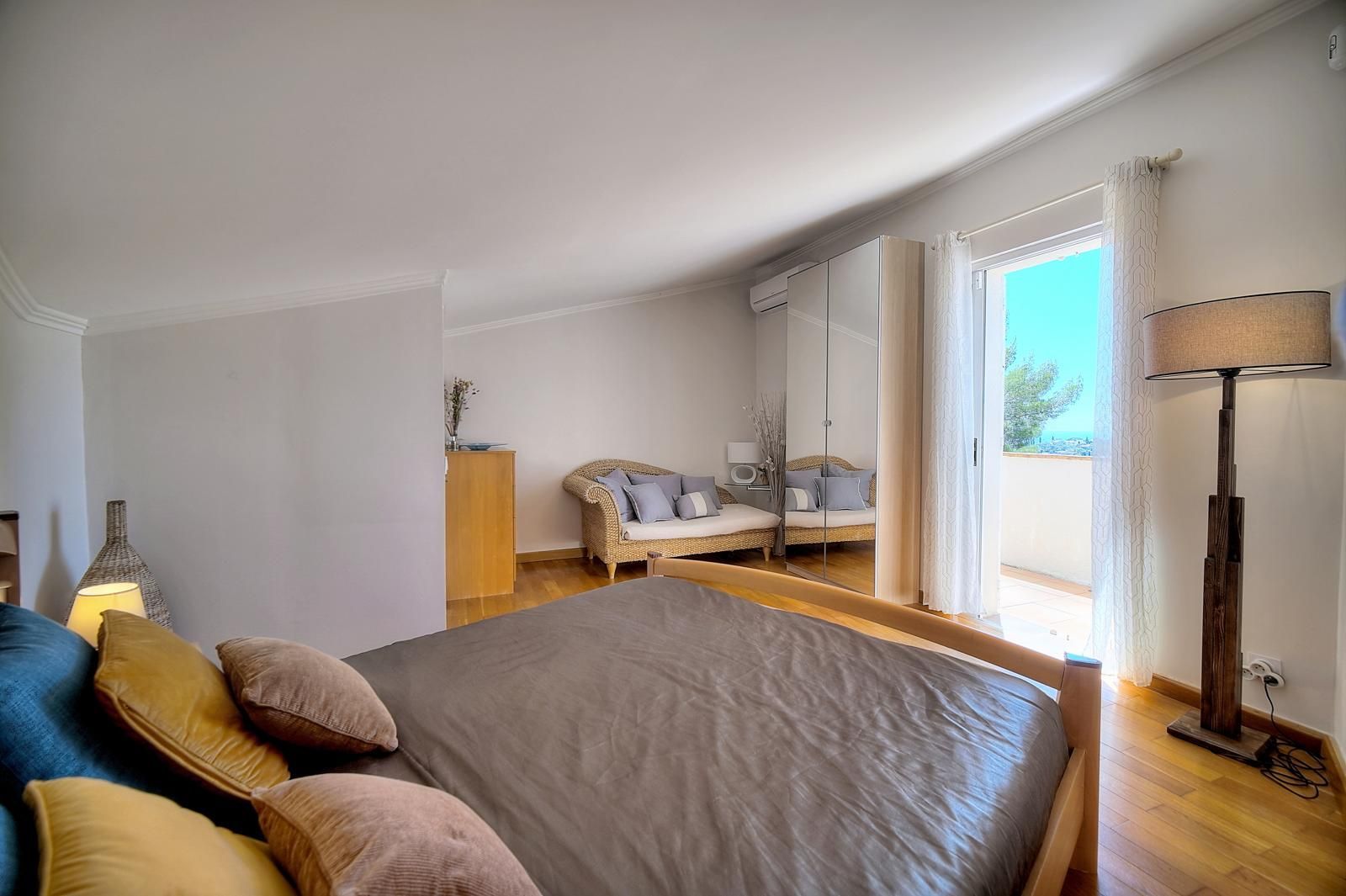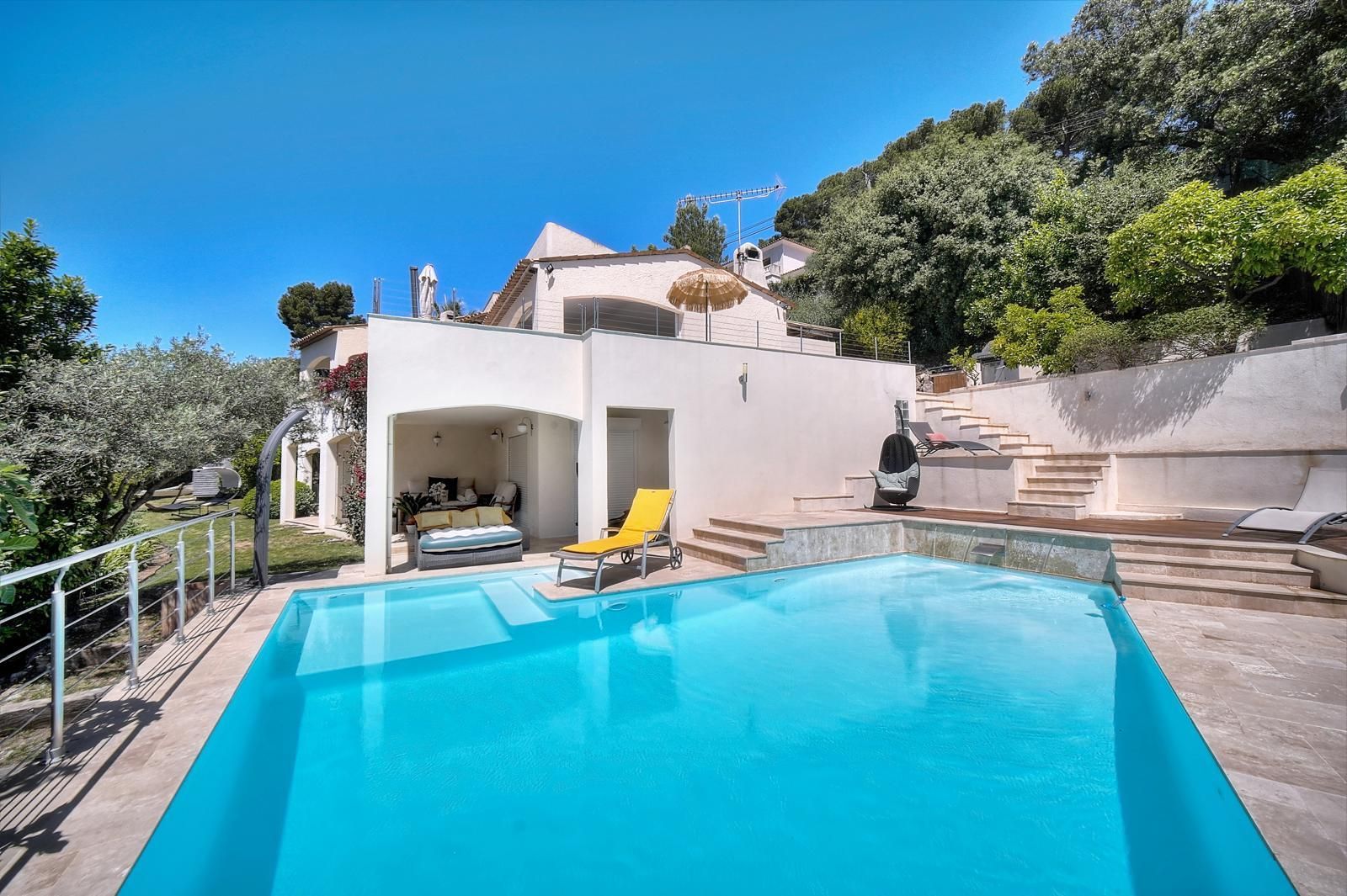 Découvrez cette charmante villa nichée dans un cadre verdoyant, offrant une expérience unique avec ses 4 chambres et sa grande piscine chauffée offrant une vue imprenable sur le golfe d’Antibes. Cette magnifique résidence exposée au sud est un havre de paix idéal pour des vacances relaxantes. Située dans un quartier prisé à moins de 4 km des plages, cette villa est également proche des commerces, des parcours de golf prestigieux, des terrains de tennis et des centres équestres. Parfaitement adaptée pour un séjour en famille, cette villa offre un confort exceptionnel sur trois niveaux. Au rez-de-jardin, vous trouverez deux chambres donnant accès à la piscine, une salle de bain et un toilette. Au premier étage, une cuisine équipée avec terrasse vue mer, un salon spacieux avec terrasse panoramique donnant sur la piscine, une chambre avec vue sur la mer, une salle de bain avec baignoire jacuzzi et un toilette. Au deuxième étage, une chambre avec balcon offrant une vue imprenable sur la mer. Profitez également des installations extérieures comprenant une piscine, un barbecue, des planchas, un coin repas, des jeux tels que baby-foot, ping-pong, air hockey, ainsi qu'un parking pouvant accueillir jusqu'à 3 voitures. Cette villa vous offre l'opportunité de passer des moments inoubliables dans un cadre exceptionnel, alliant confort, tranquillité et vue spectaculaire sur la mer.