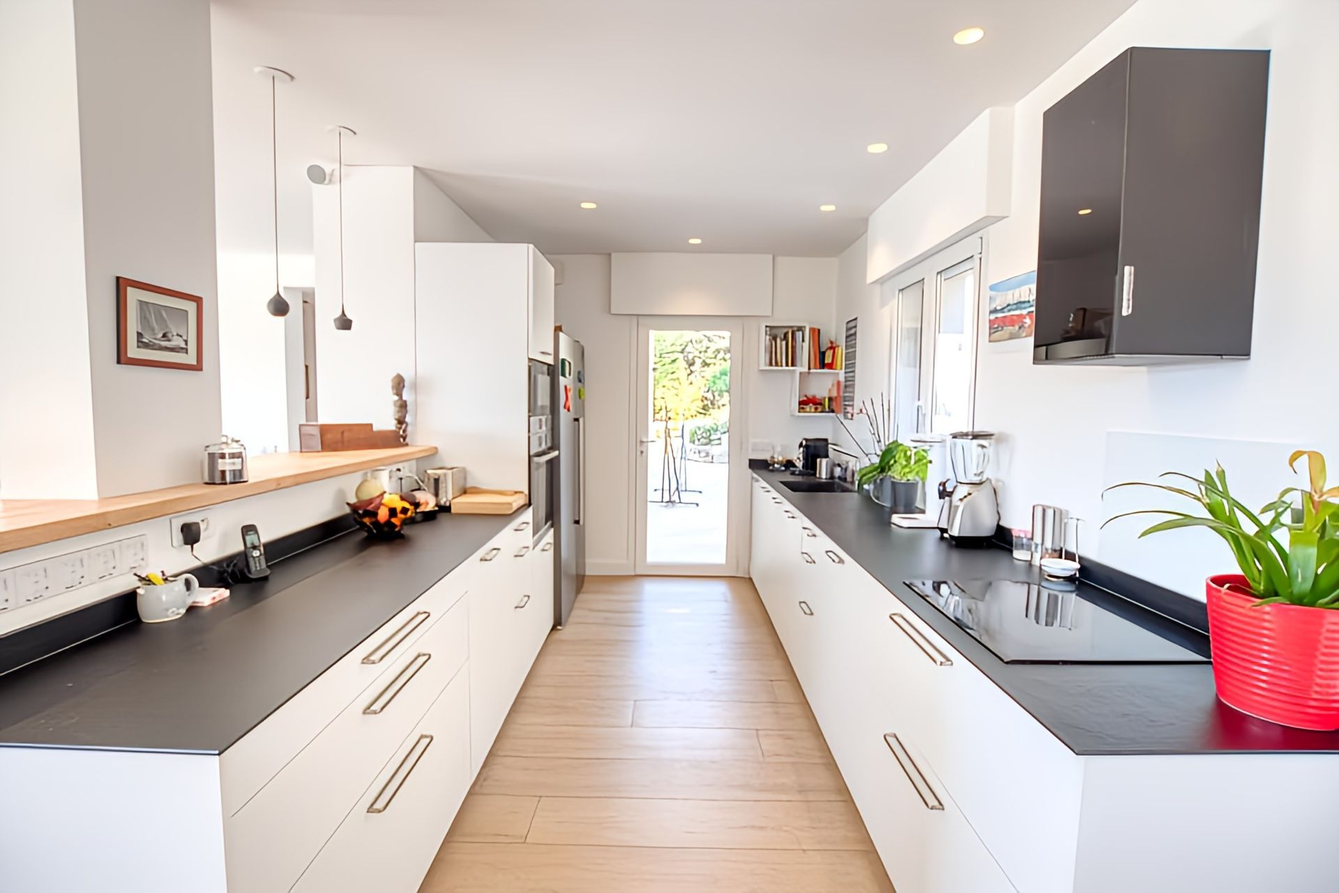 La villa est également équipée d'une cuisine moderne avec tous les appareils dont vous avez besoin pour préparer vos repas, y compris une chaise haute pour enfants pour les plus petits. Vous pourrez également profiter d'un coin salon confortable avec une cheminée et d'un bureau si vous devez rester connecté pendant votre séjour.