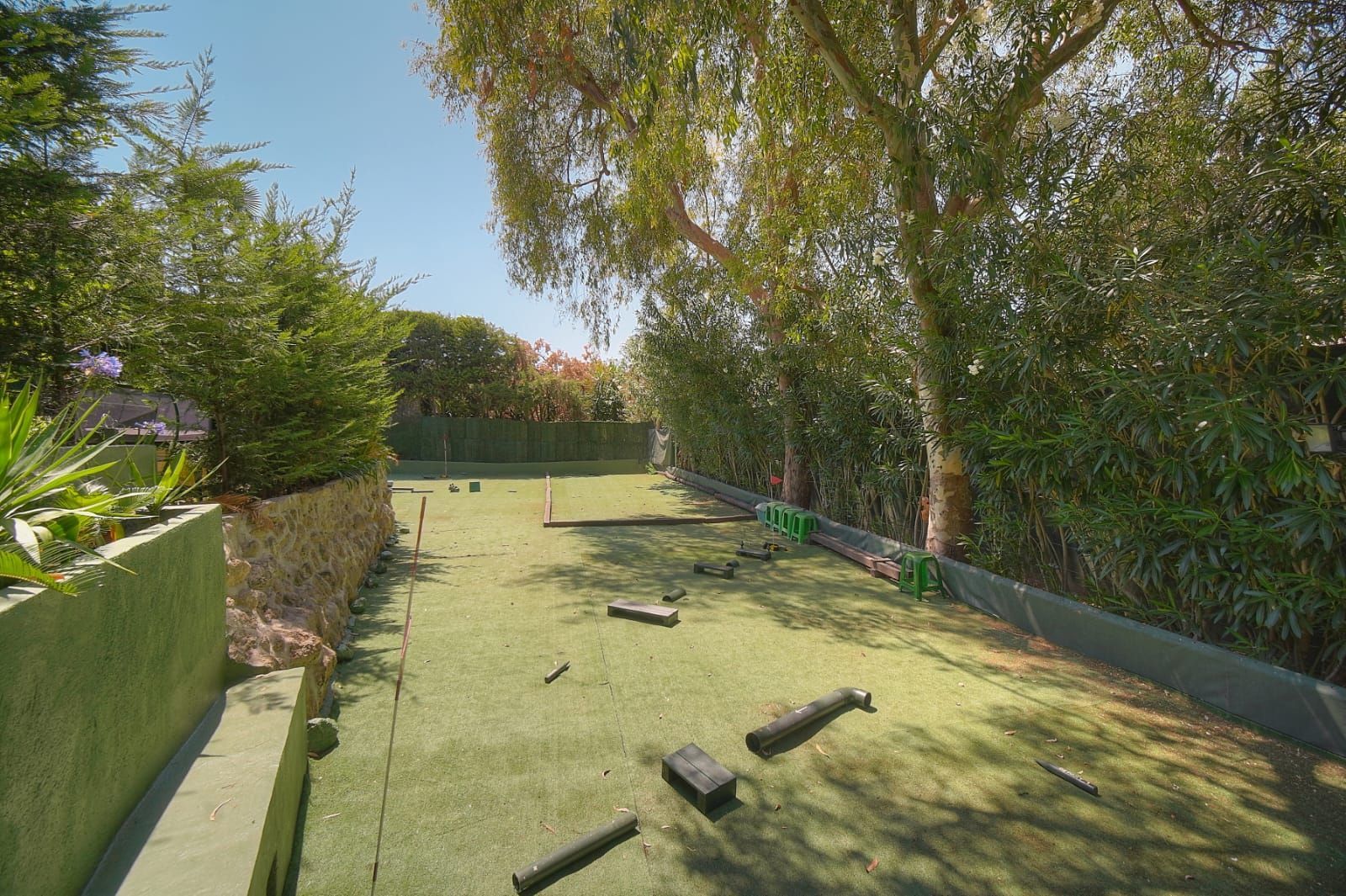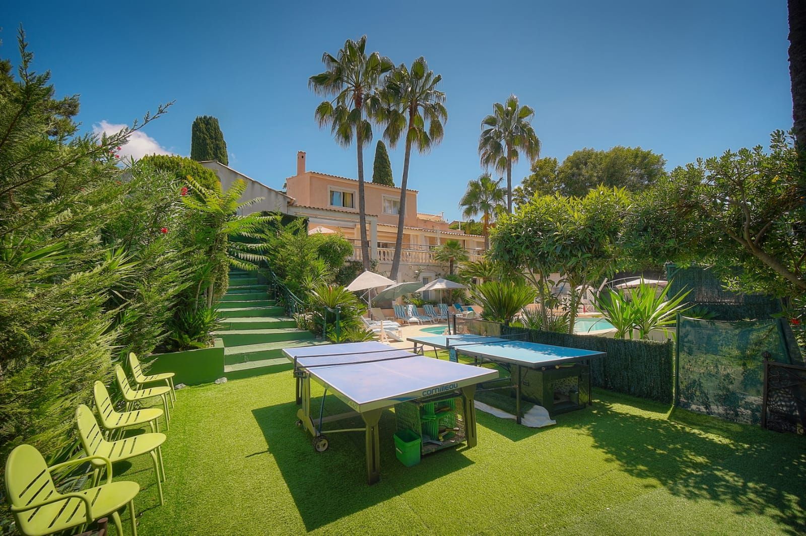 Behind the pool and the aquatic pond, a large flat lawn area (25 x 8 meters, synthetic grass) is dedicated to children’s and adult games: mini-golf, pétanque, football, badminton, and 2 ping pong tables.